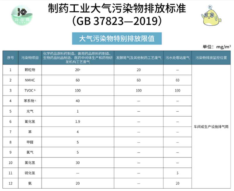 (1)对于特殊药品生产设施排放的药尘废气,应采用高效空气过滤器进行净化处理或采取其他等效措施。高效空气过滤器应满足GB/T13554—2008中A类过滤器的要求,颗粒物处理效率不低于99.9%。特殊药品包括:青霉素等高致敏性药品、β-内酰胺结构类药品、避孕药品、激素类药品、抗肿瘤类药品、强毒微生物及芽孢菌制品、放射性药品。