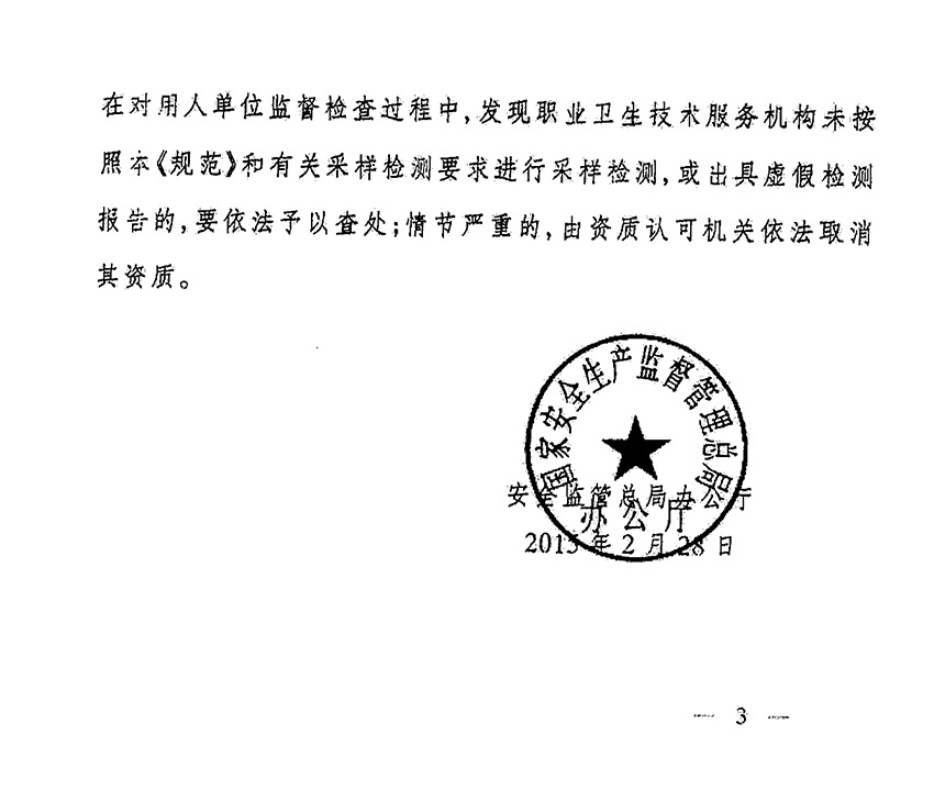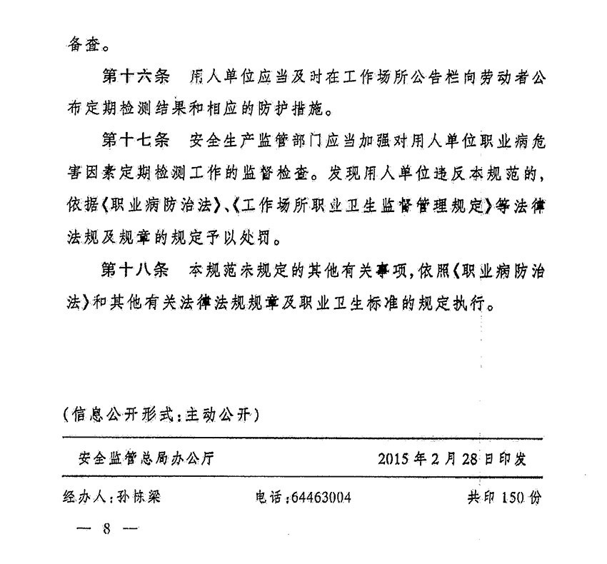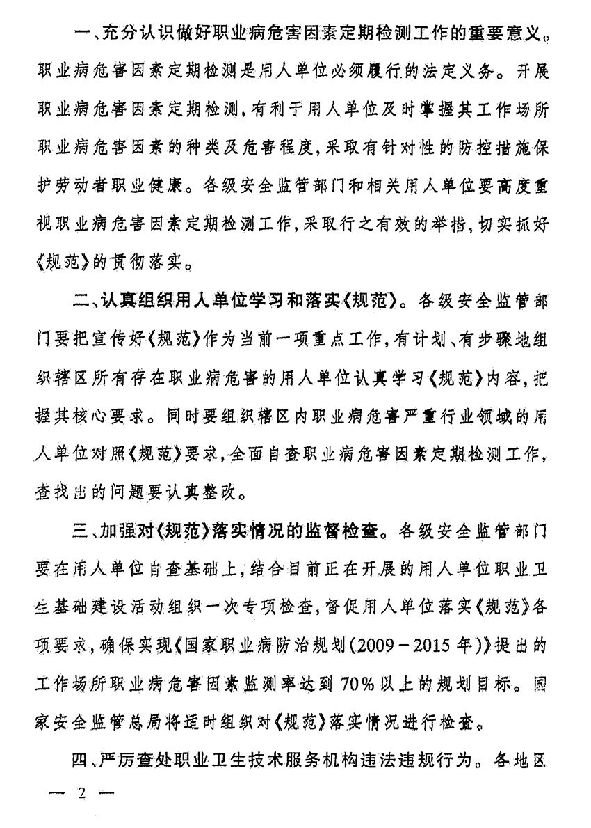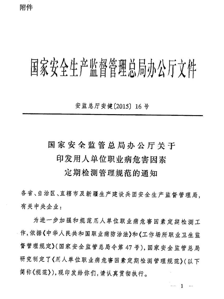 关于进一步规范用人单位工作场所职业病危害因素检测的通知(东安监管(2016)132号