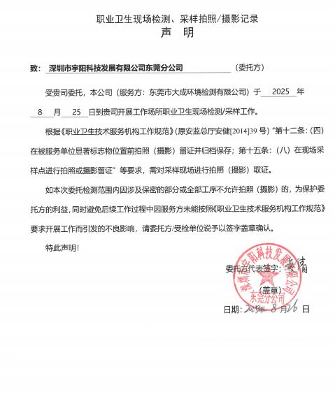 | 报告名称 | 东莞市东宇阳电子科技发展有限公司职业病危害定期检测报告书 | |||||