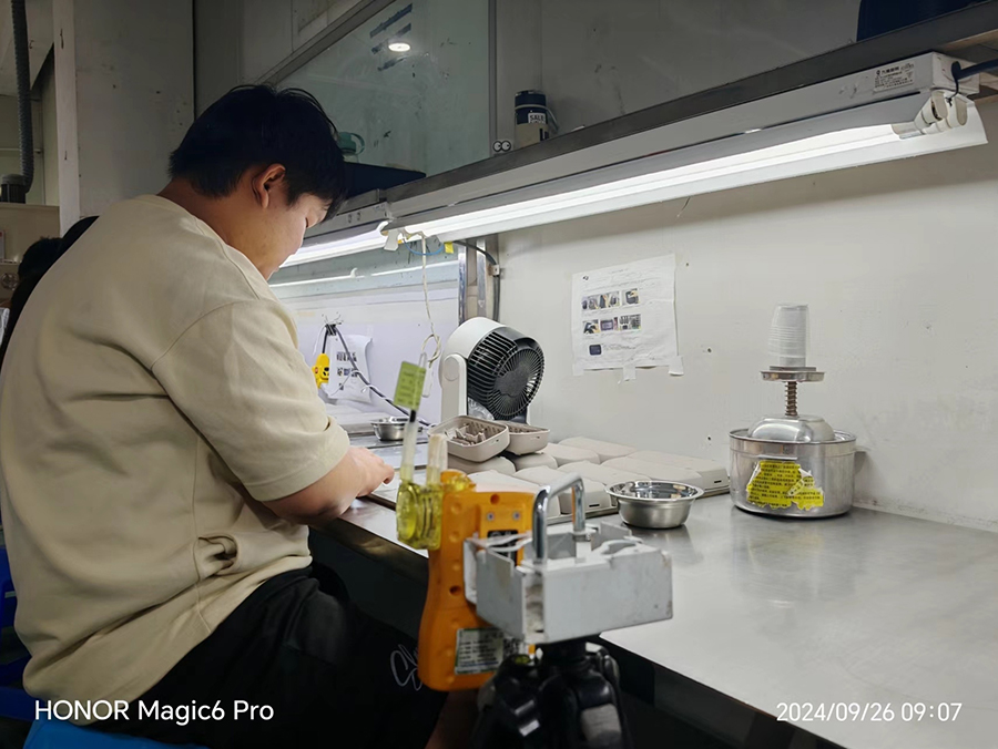 | 用人单位工作场所在评价阶段存在或产生的主要职业病危害因素包括: (1)粉尘:砂轮磨尘、其他粉尘(混合塑料粉尘) (1)化学物质:乙酸甲酯、乙酸乙酯、乙酸丁酯、环己酮、正己烷、正庚烷、甲苯、二甲苯(全部异构体)、1,2-二氯乙烷、甲醇、异丙醇、碳酸钠; (2)物理因素:噪声、工频电磁场。 工作场所职业病危害因素检测及评价结果显示,用人单位一区2栋2F加工打磨车间刮胶手磨检查工接触的正己烷、一区2栋3F清洗车间清洁工接触的正己烷、正庚烷浓度超过职业接触限值,其余各工种/岗位接触的化学有害物质浓度未超过职业接触限值;用人单位一区2栋2F CNC车间CNC工、一区2栋2F清洗车间超声波清洗工、一区2栋3F清洗车间气枪吹扫工接触的噪声强度测量值超过职业接触限值;其余各岗位/工种接触的噪声强度测量值均未超过职业接触限值; |