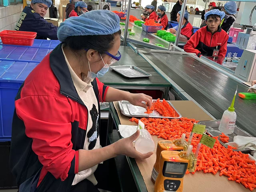 | 用人单位工作场所在评价阶段存在或产生的主要职业病危害因素包括: (1)粉尘:其他粉尘(ABS粉尘)、砂轮磨尘、电焊烟尘 (2)化学物质:甲苯、二甲苯(全部异构体)、正己烷、乙酸乙酯、丙酮、甲乙酮(2-丁酮)、环己酮、甲醇、二氯甲烷、二氧化锡(按Sn计)、锰及其无机化合物、臭氧、氮氧化物、一氧化碳; (3)物理因素:噪声、紫外辐射、激光辐射、高频电磁场、工频电场。 工作场所职业病危害因素检测及评价结果显示,用人单位各岗位/工种接触化学物质浓度均未超过职业接触限值;用人单位A3装配二车间超声波工,H1子弹车间子弹组装工、子弹包装工、吸塑工的噪声强度测量值超过职业接触限值,其余各岗位/工种接触的噪声强度测量值均未超过职业接触限值。 |