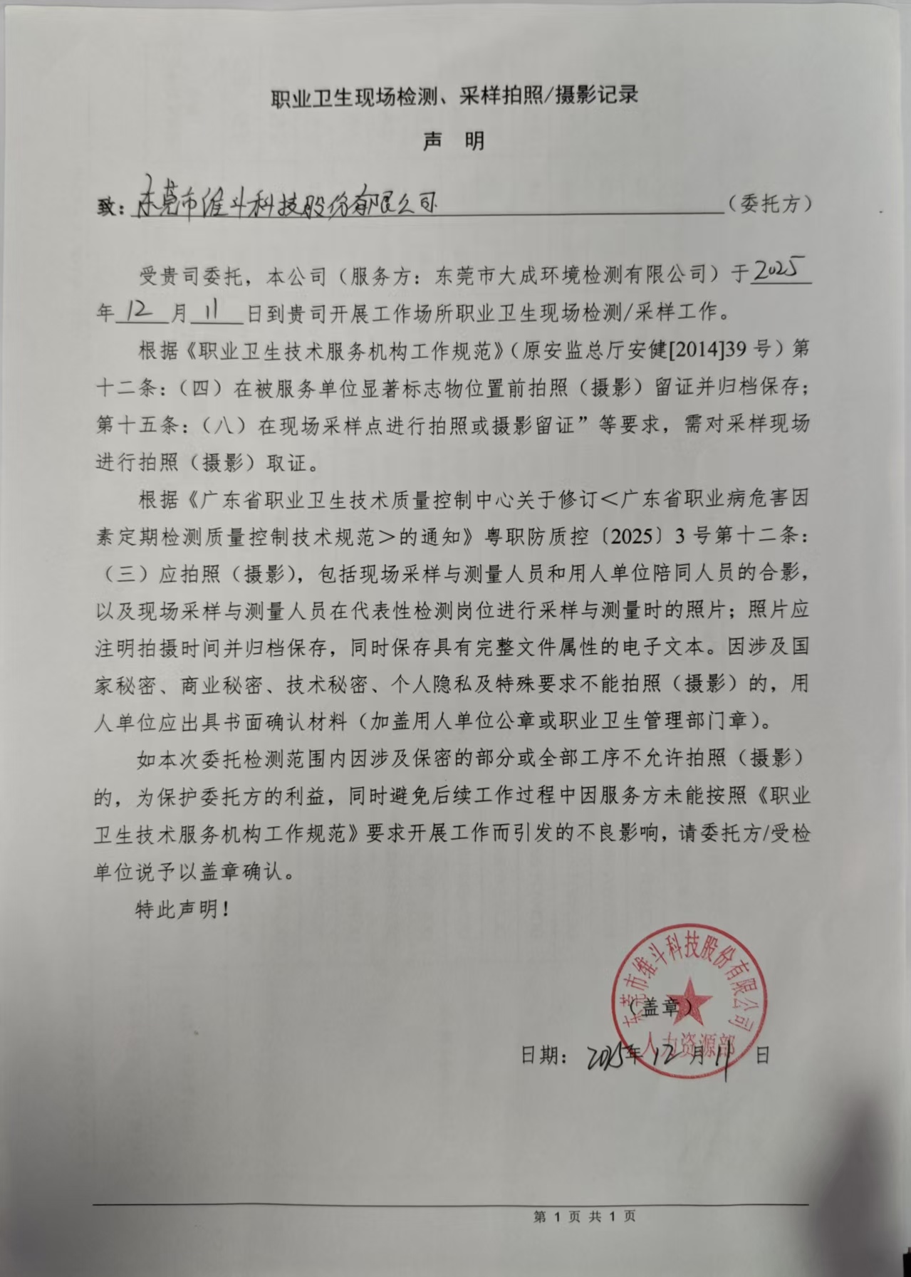 | 报告名称 | 东莞市维斗科技股份有限公司职业病危害定期检测报告书 | |||||