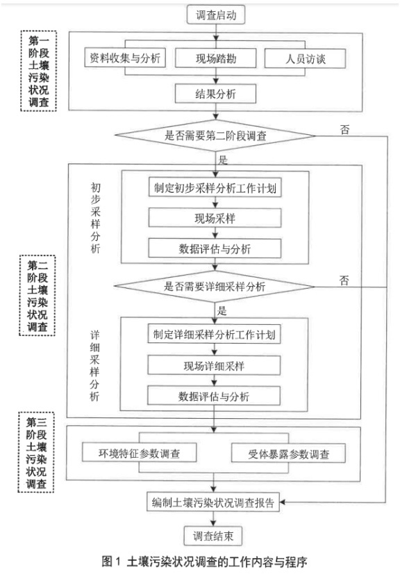 根据HJ 25.1-2014场地环境调查技术导则,场地的定义是:某一地块区域内土壤、地下水、地表水及地块内所有建筑物、设施、生物的总和。场地环境调查,即通过系统的调查方法确定地块是否被污染,一般分为三个调查阶段: