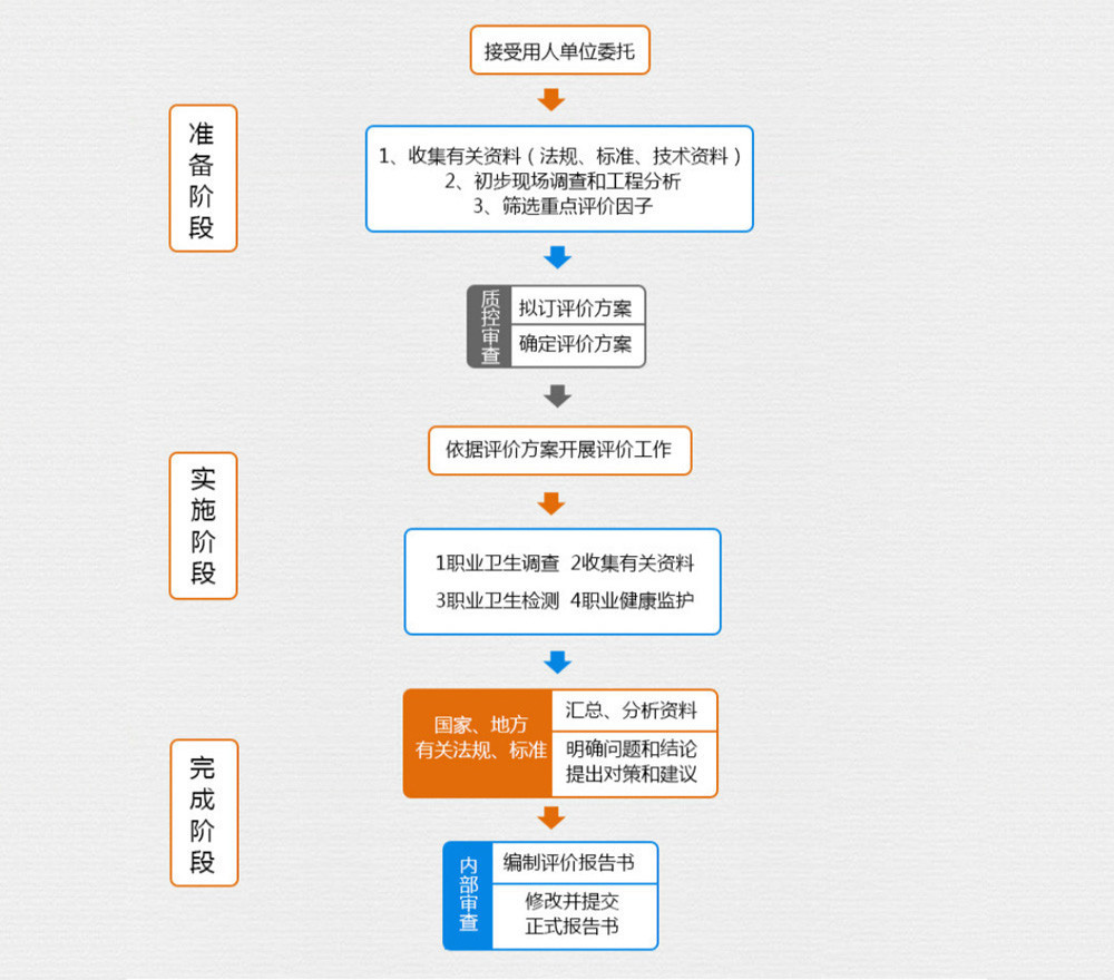 评价内容:主要包括选址、总体布局、生产工艺和设备布局、建筑卫生学要求、职业病危害因素和危害程度及对劳动者健康的影响、职业病危害防护设施、辅助用室基本卫生要求、应急救援、个人使用的职业病防护用品、职业卫生管理、职业卫生专项经费概算等。